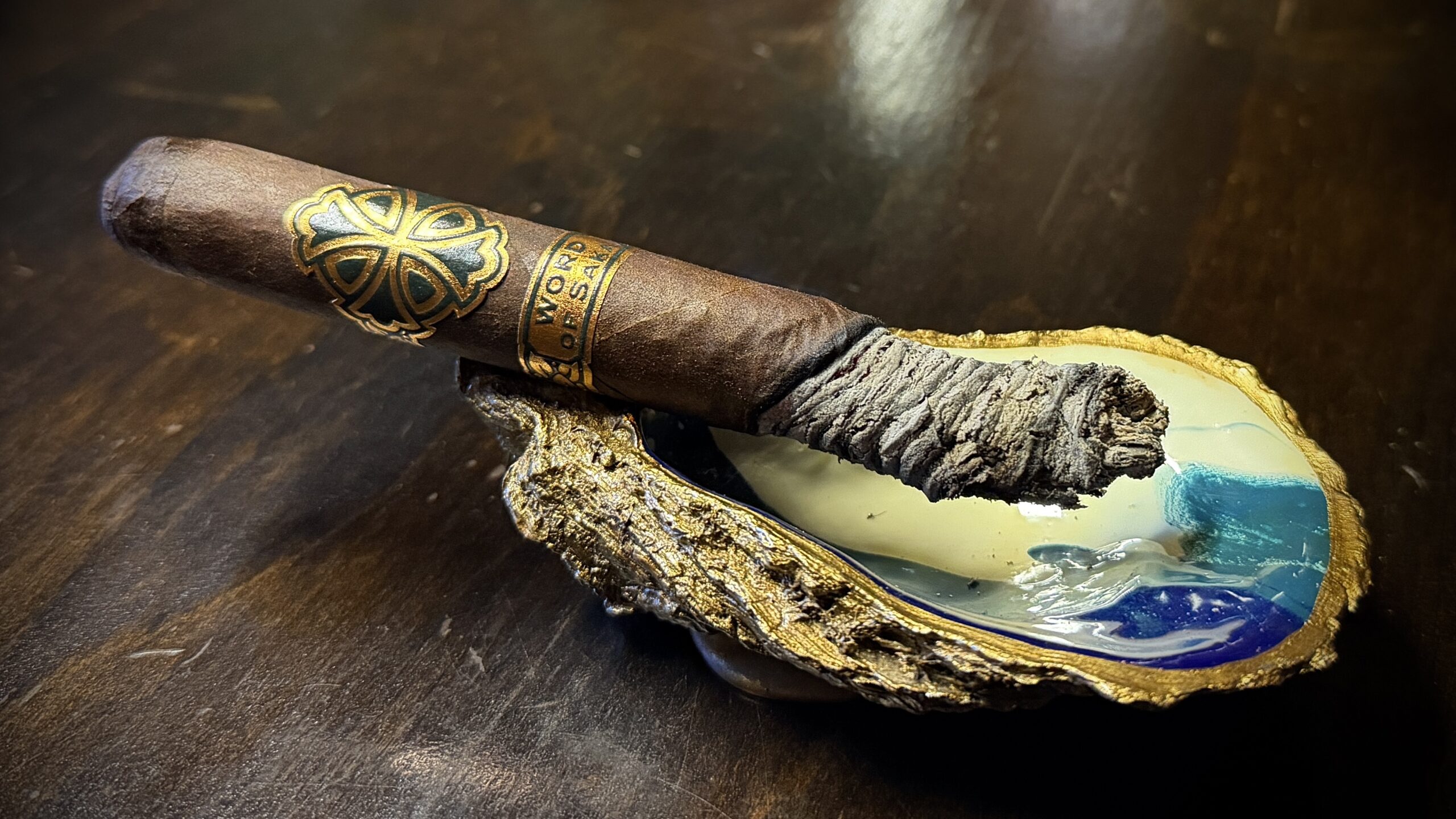The Word of Saka features very good overall construction so far with a smooth, clear draw and an acceptable burn line (one touch up was required in the first half to keep things in check). While the triple threat of pepper/oak/must is undeniably enjoyable, the bold coffee flavors combined with dark chocolate via the draw deserve their time in the spotlight as well. Full bodied and damn near full strength as we approach the fifty yard line, my first thought is that this particular cigar is not ideal for beginners.